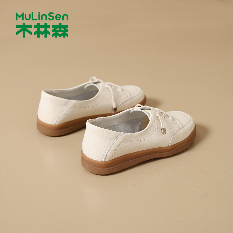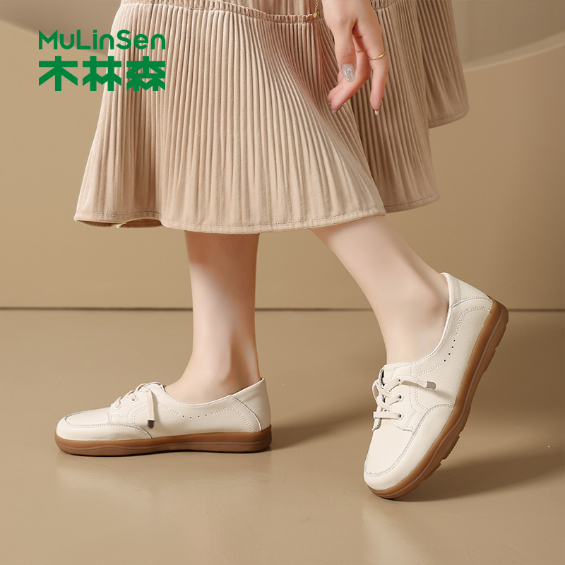 系带舒适休闲鞋 新款 时装 单鞋 木林森女鞋 百搭软底豆豆鞋 2025年秋季
