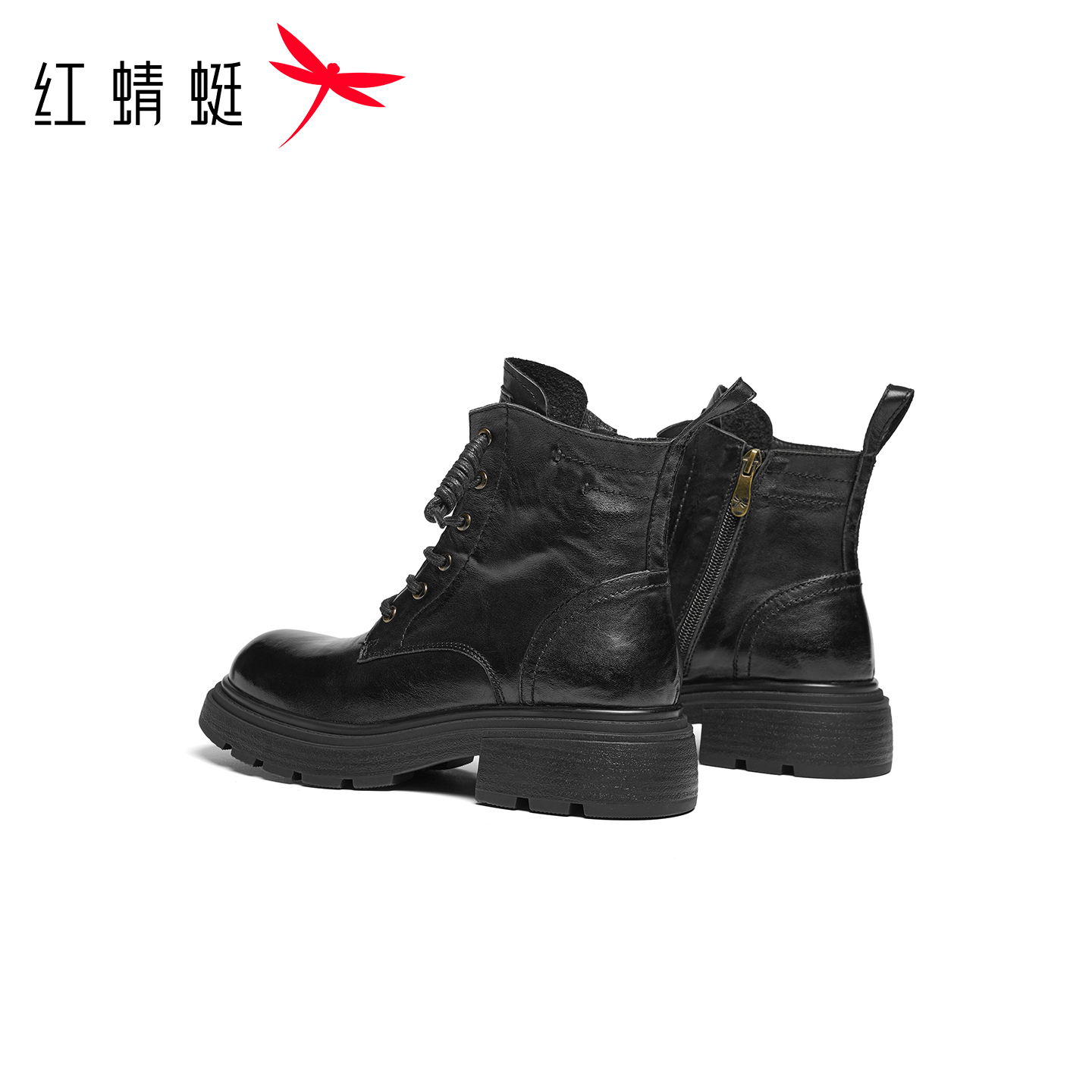 红蜻蜓马丁靴2025秋冬新款 厚底真皮休闲短靴英伦复古单靴女靴 女鞋