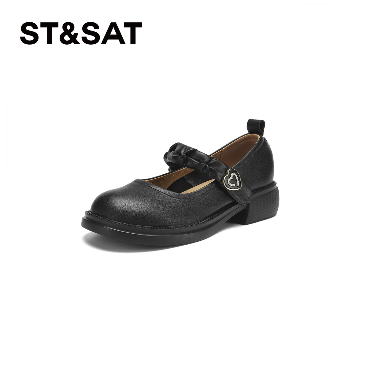 真皮浅口单鞋 新款 子E1T1DCQ5预 女2025秋季 百丽复古粗高跟玛丽珍鞋