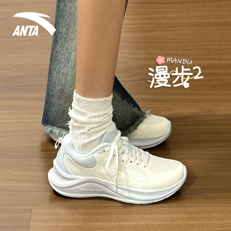 官方舒适网面透气软底皮面休闲运动鞋 安踏漫步跑步鞋 新款 秋季 女鞋