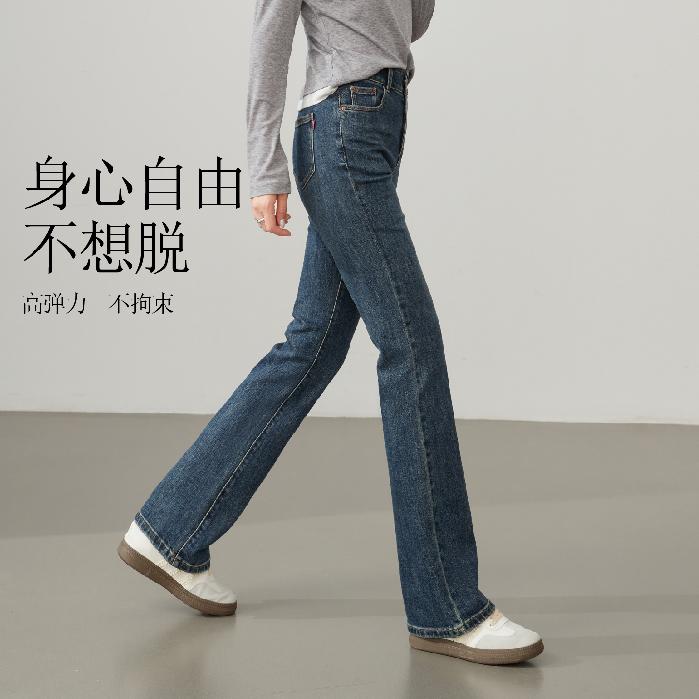 乔栈蓝色设计感小个子微喇牛仔裤 气质显瘦喇叭 女2025秋冬加绒修身
