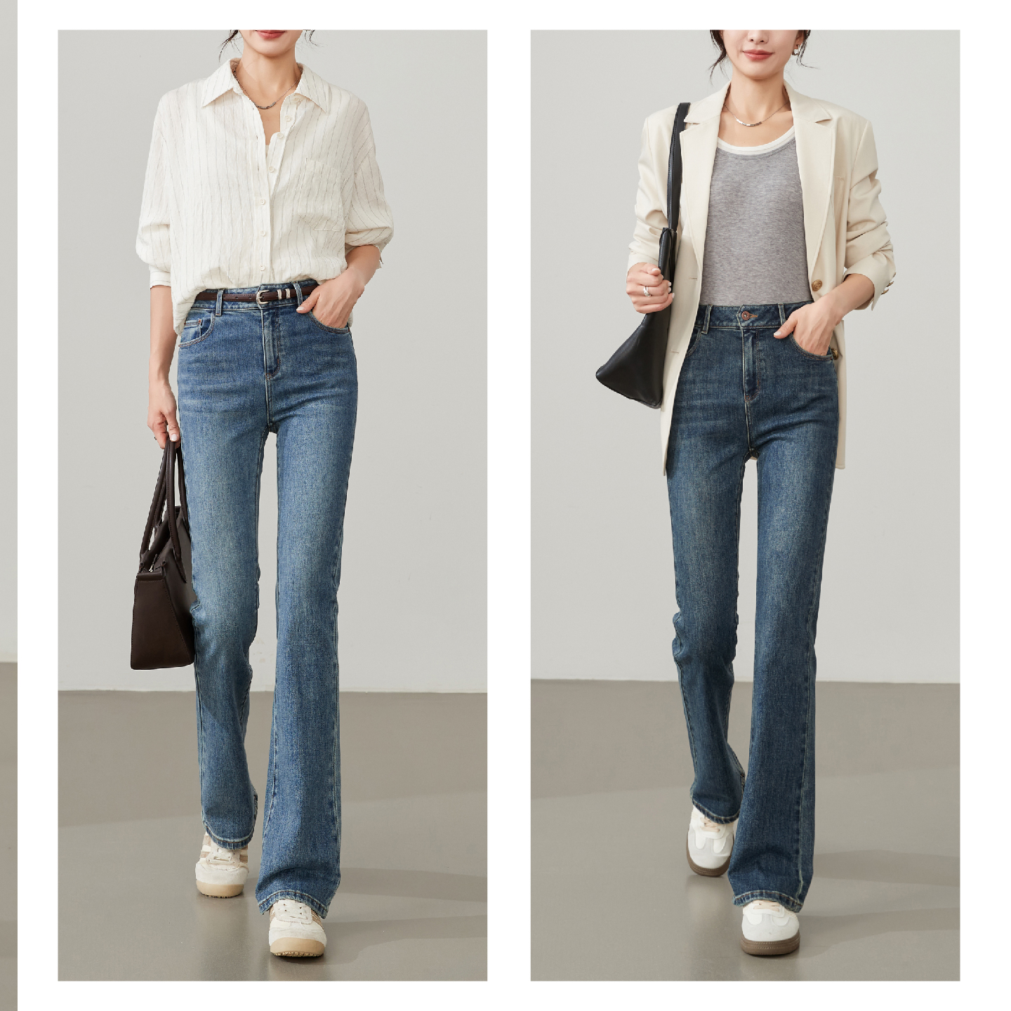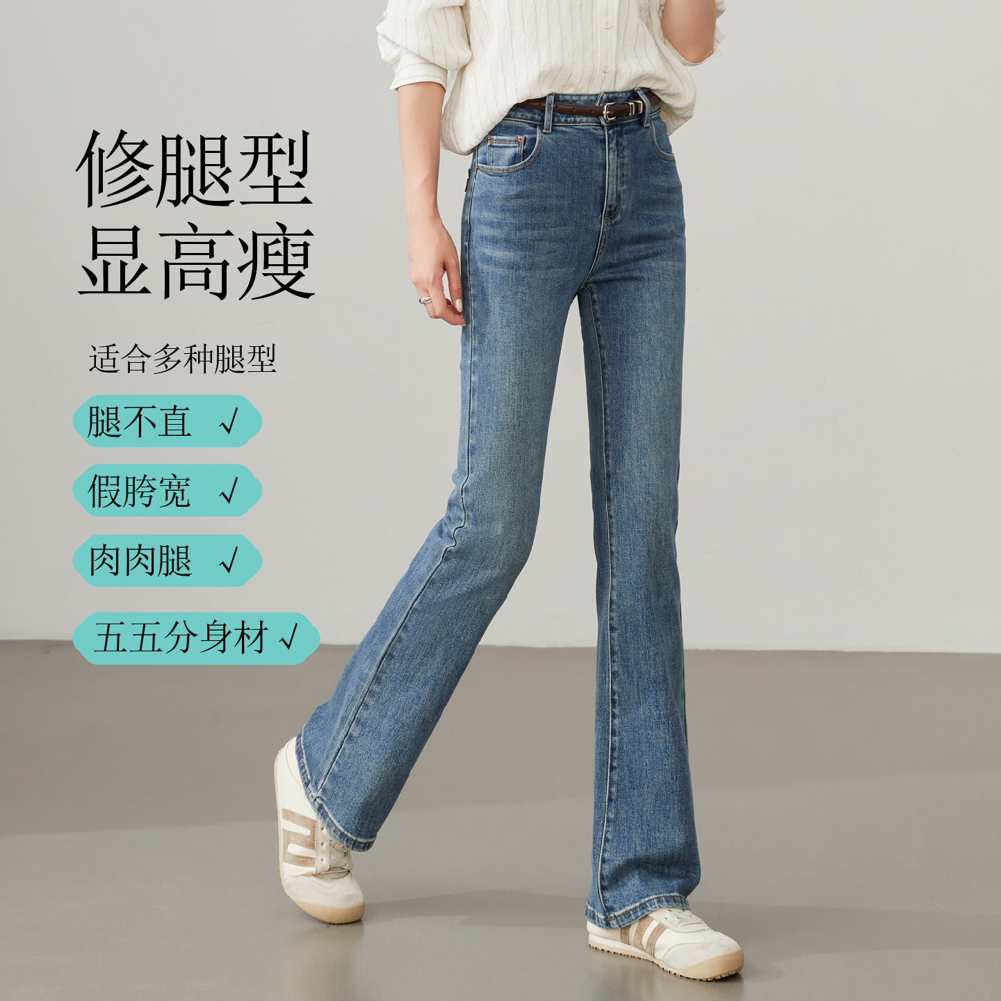 小个子穿搭高腰喇叭裤 自然涩美式 薄款 女2025春秋季 子 微喇牛仔裤