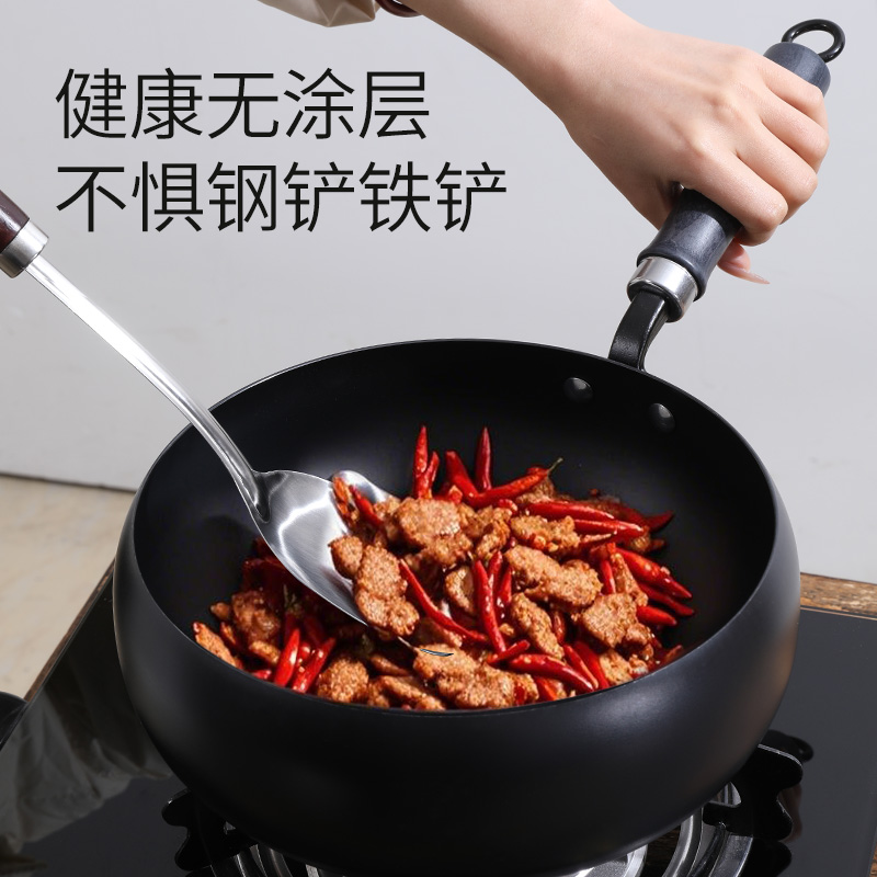 正品 铁锅无涂层家用熟铁炒菜锅不粘锅适用燃气灶专用炒锅 传统老式