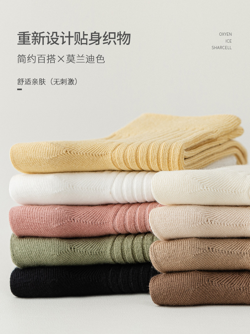 棉伙棉伴海藻袜舒适抗菌防臭男女商务运动纯色裸感中筒袜