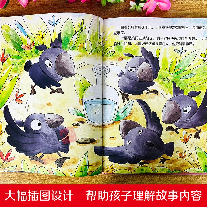 寓言故事 乌鸦喝水 中国成语故事 精装 阅读绘本 中外经典 大开本无拼音A4大小硬皮绘本幼儿园推荐 亲子阅读硬绘本 硬壳绘本