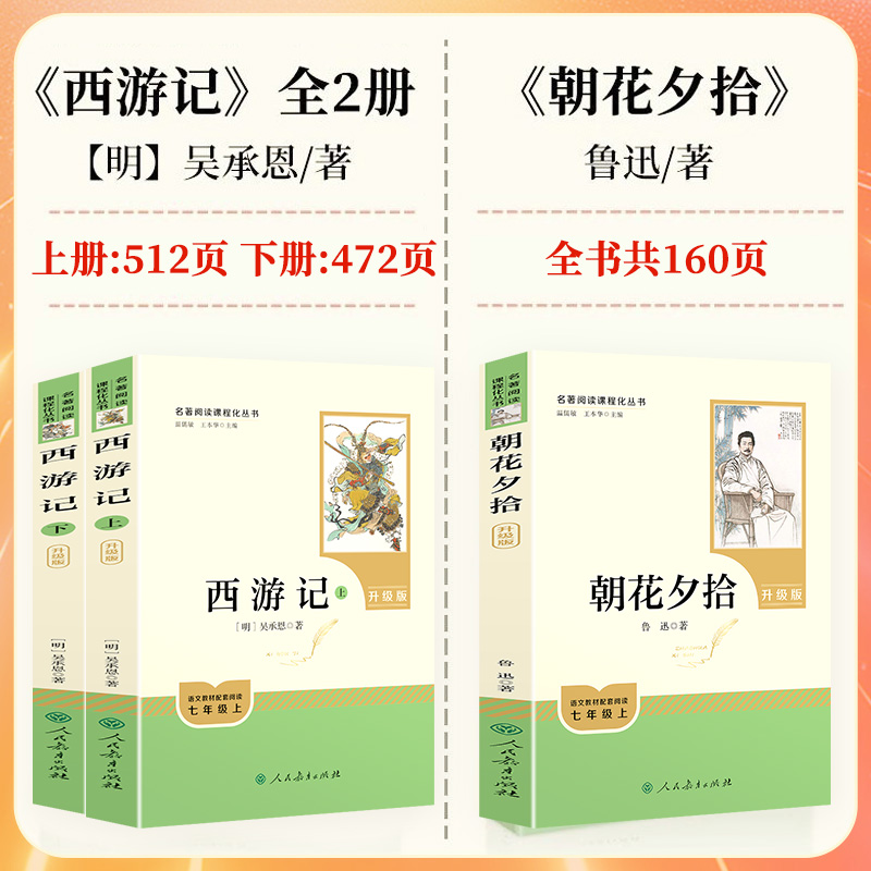 社课外阅读书籍湘行散记猎人笔记镜花缘白洋淀纪事 无删减人民教育出版 朝花夕拾鲁迅原著正版 西游记七年级上册必读名著课外书完整版