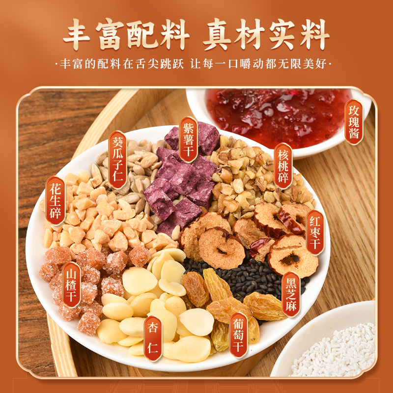 开封特产杏仁茶八宝玫瑰老北京坚果红枣藕粉杏仁粉配料莲子羹早餐
