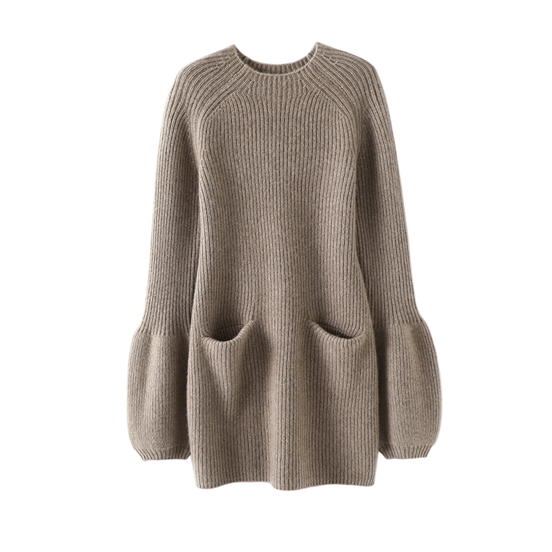 圆领修身 眼前一亮 女中长款 羊绒衫 纯羊绒毛衣连衣裙子 加厚灯笼袖