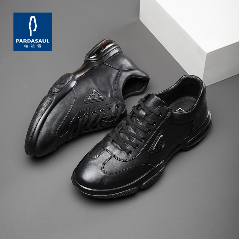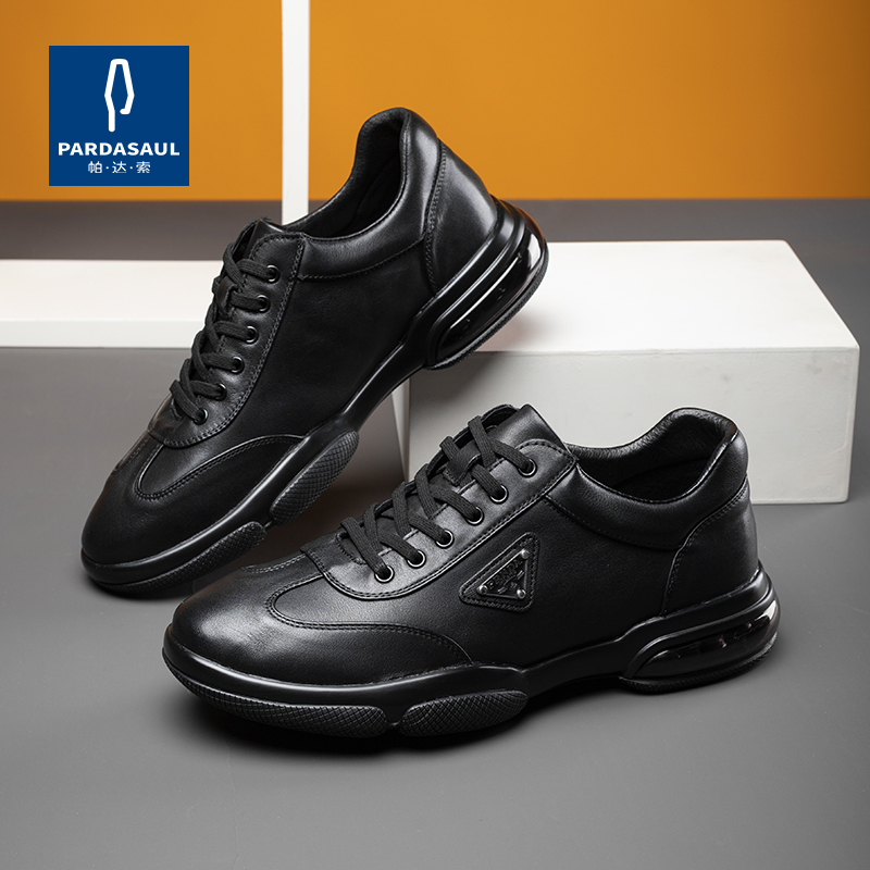 230319 黑色百搭潮流板鞋 帕达索休闲皮鞋 圆头系带气垫运动休闲鞋