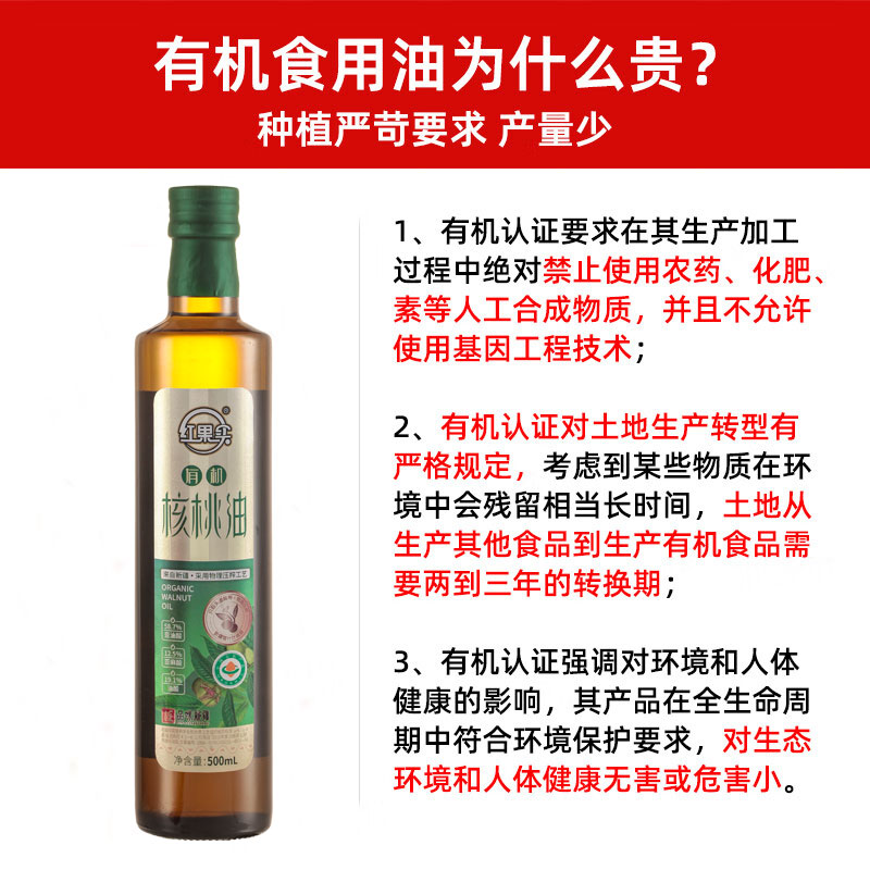新疆红果实有机核桃油物理压榨一级500ml 5瓶营养食用油辅食家用