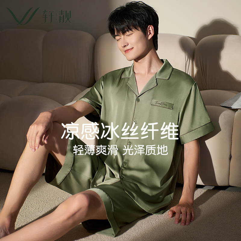 睡衣男士 丝绸家居服套装 夏天冰丝短袖 仿真丝大码 夏季 轩靓2025新款