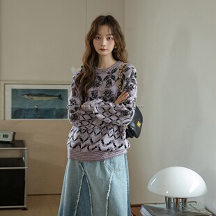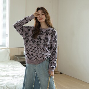 高级感上衣宽松打底针织衫 圆领100%纯山羊绒衫 女高端毛衣秋冬新款