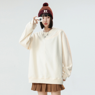 宽松卫衣男款 重磅纯棉美式 早秋穿搭上衣C 男t恤秋季 班尼路白色长袖