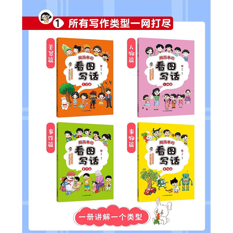 看图写话全4册 山东教育出版 美景篇人物篇事件篇事物篇 破解小学1.2年级写作困难症 社 图解漫画教方法三步就能写作文 超简单