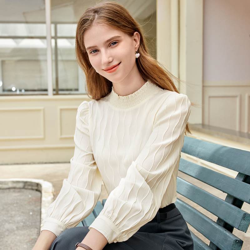 betu百图冬2024冬新款 衬衣 设计感小众通勤半高领花边衬衫