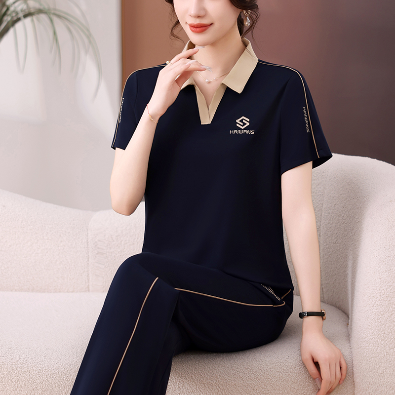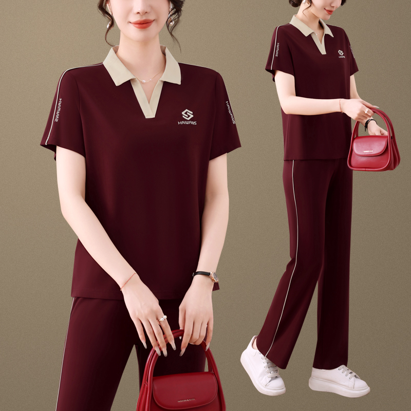 T恤长裤 中老年运动服套装 短袖 洋气妈妈装 休闲跑步服两件套 女夏季