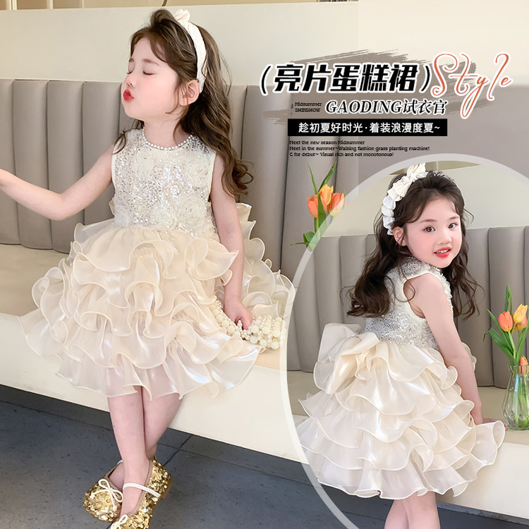 亮片连衣裙夏季 儿童洋气公主裙子超仙蓬蓬纱裙小女孩演出礼服 新款