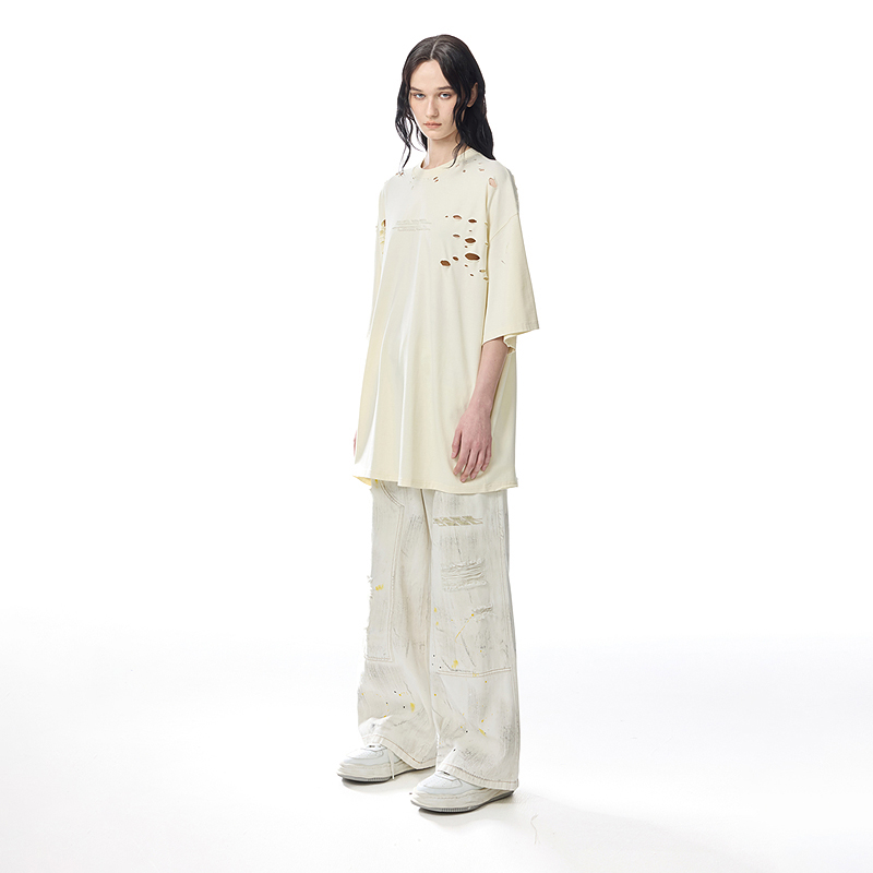 商场同款 短袖 新款 破洞简约男女同款 宽松休闲时尚 TOFOURTHT恤