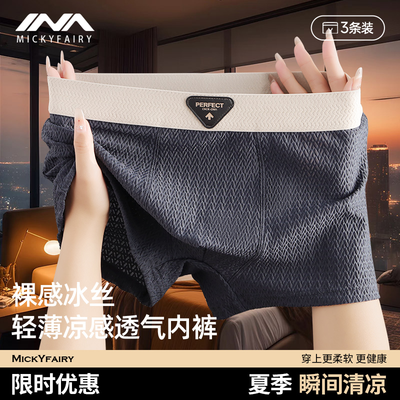 冰丝透气四角短裤 3件 莫代尔大码 平角内裤 男生 蕉内银皮500E男士