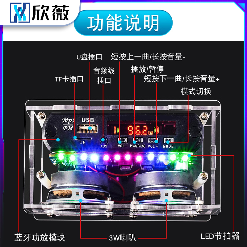 收音机音响DIY套件 FM调频电子制作焊接练习 功放蓝牙音箱带频谱