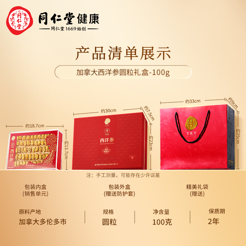 北京同仁堂加拿大西洋参礼盒100g圣诞节礼品送长辈送父母礼物正品