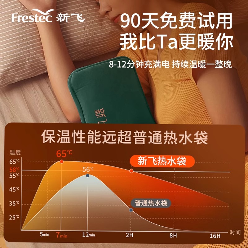 新飞热水袋充电款 毛绒暖手宝暖宝宝女电暖宝小暖水袋电热宝防爆