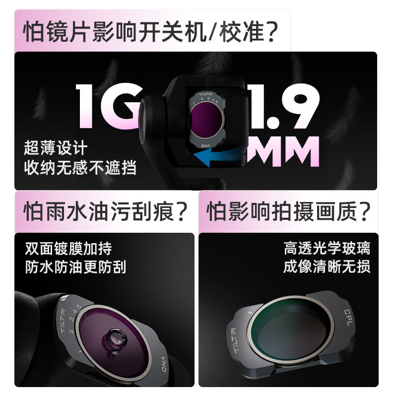 配件 Pocket3口袋云台相机磁吸滤镜黑柔滤镜ND减光镜CPL偏振镜柔光镜套装 TILTA铁头滤镜 适用于大疆DJI