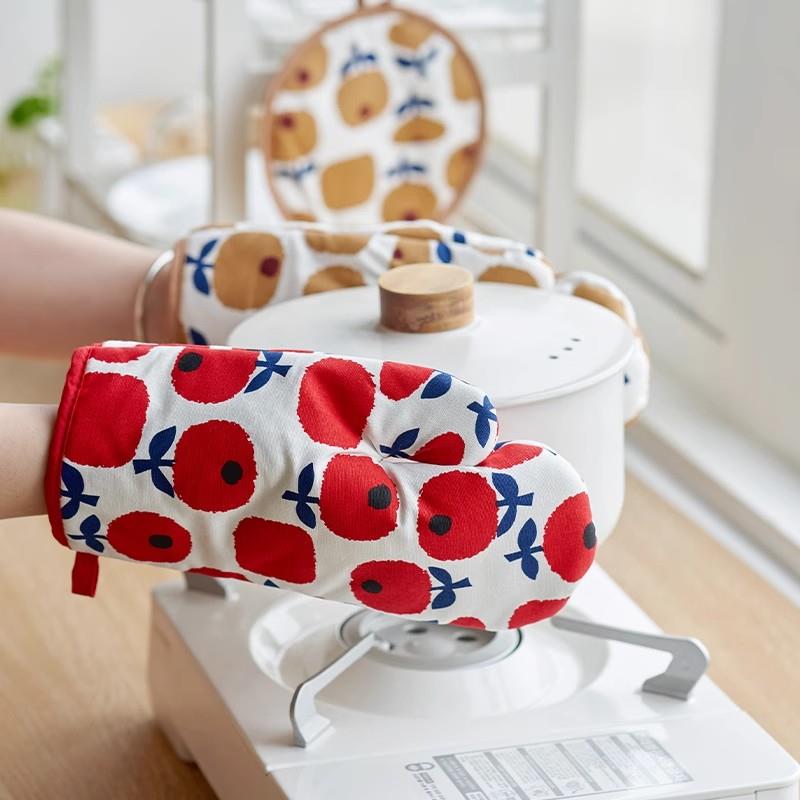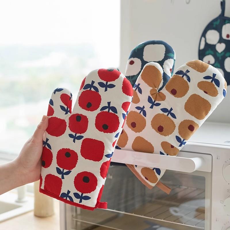 日式 隔热手套微波炉棉麻厨房专用烘焙手套烤箱耐高温防烫手套家用