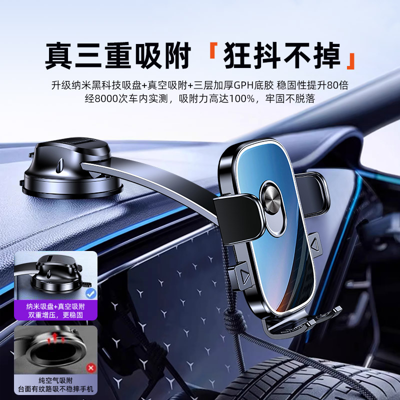 车载手机支架2025新款 汽车导航专用真空吸盘车内固定防抖车用支撑