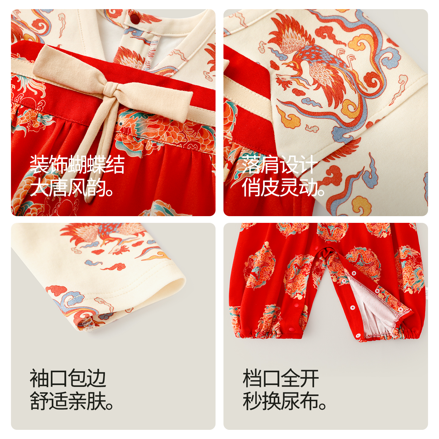 连体 汉服加绒长袖 龙喜年周岁女宝礼服拜年婴儿百天衣服唐装 新中式