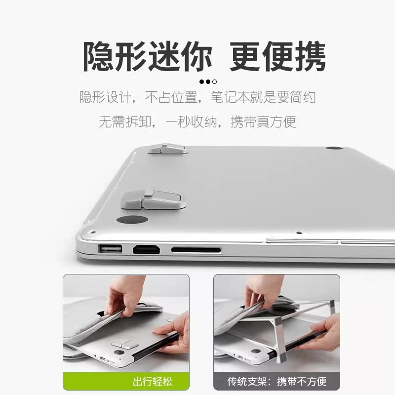 笔记本电脑支架便携隐形脚垫迷你立体式 托架散热器键盘脚支撑折叠底座锌合金