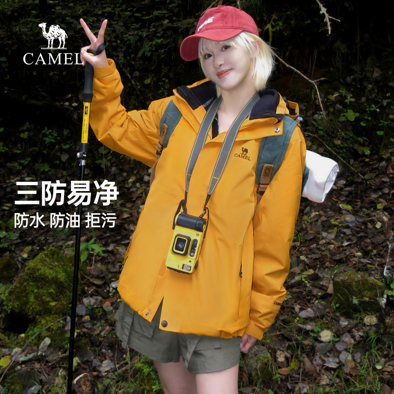骆驼户外三合一冲锋衣女装 可拆卸内胆2025春秋防风防水登山服外套