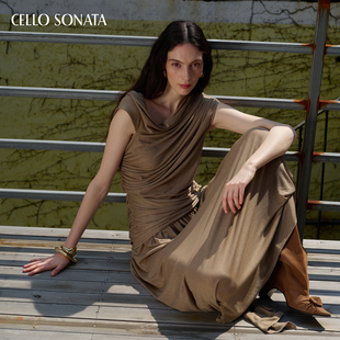 无袖 格纹纯棉柔软捏褶收腰通勤2025新款 连衣裙 LILY法式 博主同款