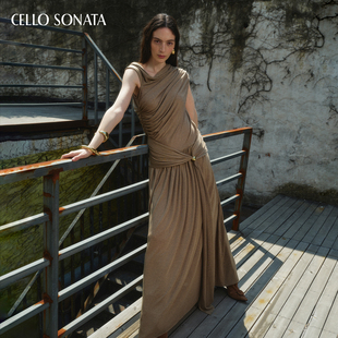 COCOBELLA度假风提花褶皱吊带连衣裙女25夏气质吊带裙FR3077