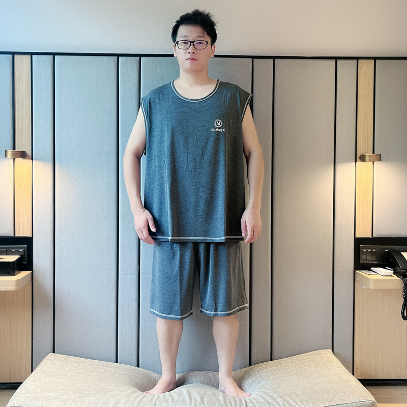 夏季 夏天冰丝胖子加肥家居服套装 背心无袖 大码 薄款 莫代尔睡衣男士