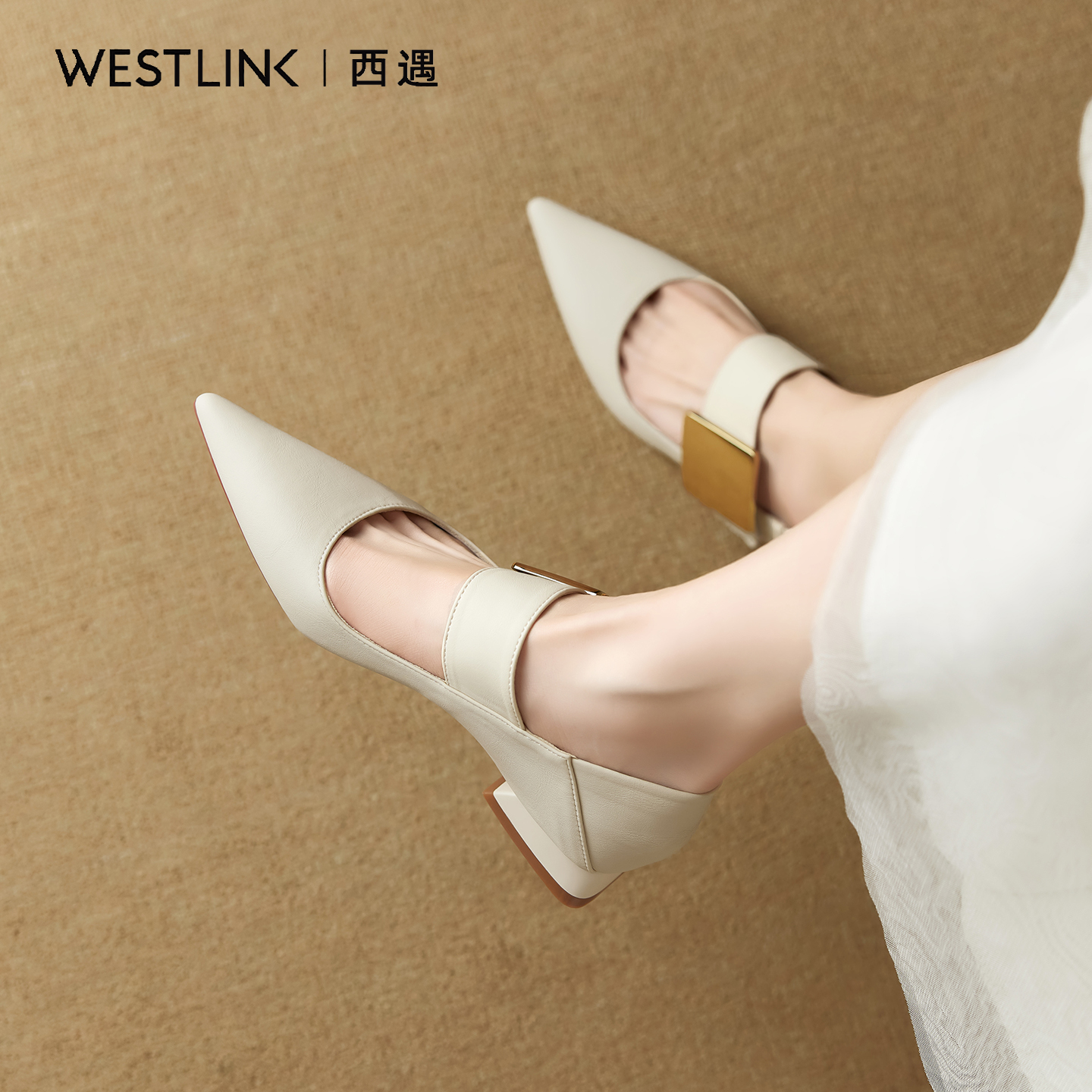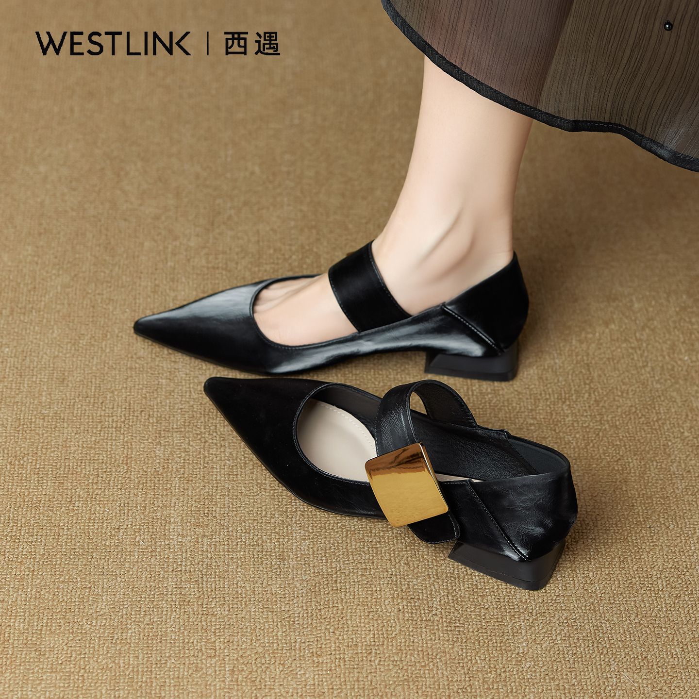 金属扣气质平底浅口单鞋 夏季 女A 2025新款 西遇尖头玛丽珍低跟女鞋