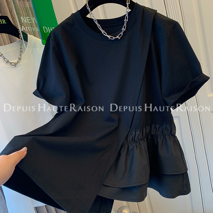 新款 T恤漂亮上衣女士2025夏季 绝美拼接荷叶边独特设计感短袖 法式