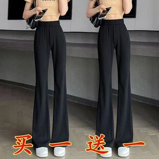 休闲阔腿卫裤 高腰垂感显瘦春秋直筒窄版 女夏2025年新款 黑色运动裤