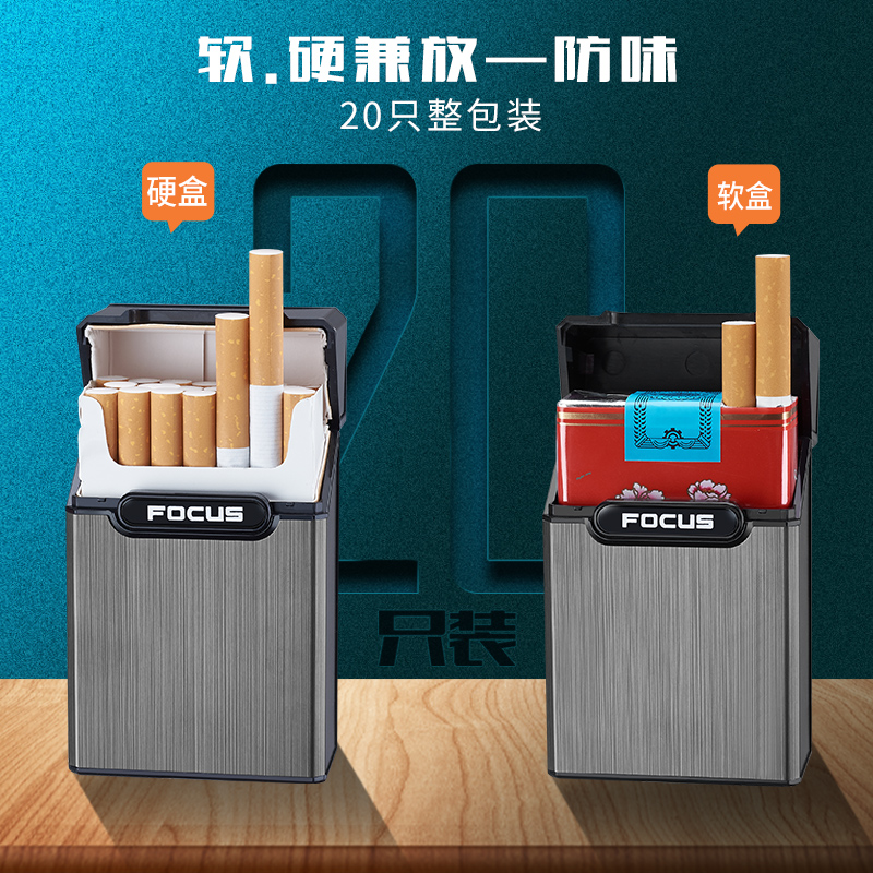 焦点20支装 创意软硬包铝合金粗香烟套防压 烟盒男便携高档防潮个性
