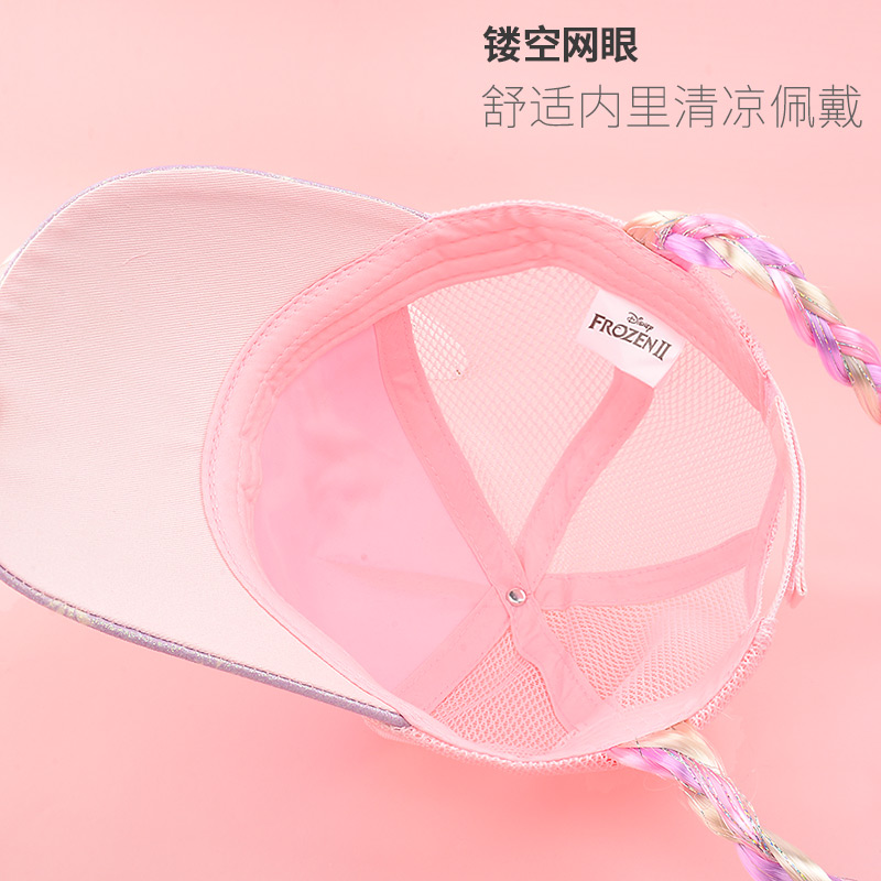 迪士尼儿童太阳帽女童春夏季 遮阳遮阳网眼爱莎公主假发辫子棒球帽