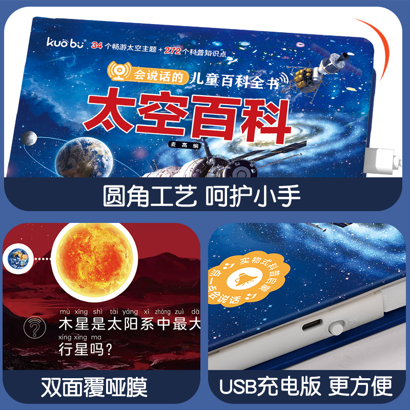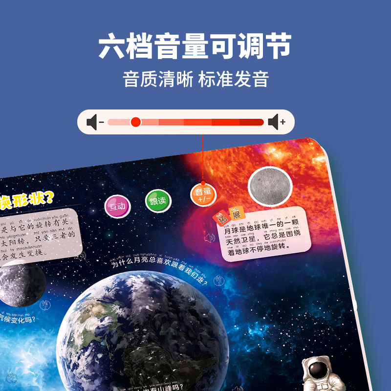 小学生太空有声读物宝宝幼儿手指点读发声书启蒙认知早教机趣味科普绘本书籍 儿童百科全书早教有声书 太空百科点读发声书 会说话