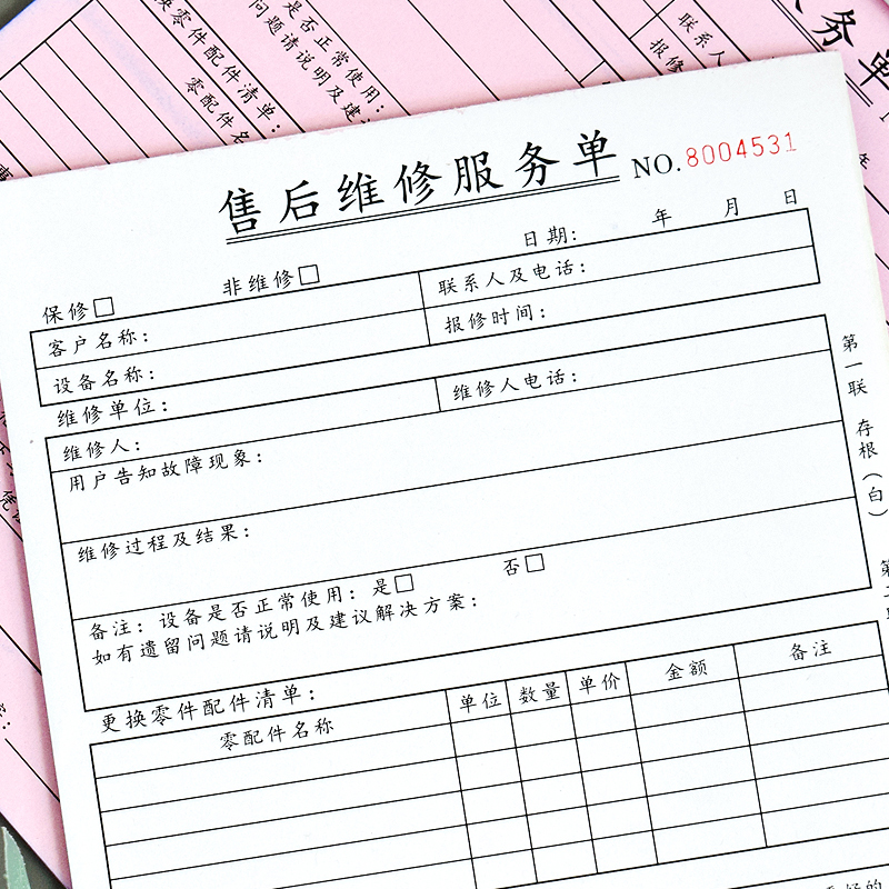 汽车摩托车维修单家电电器设备维修清单机械汽修厂4s店铺门店车辆报修单据服务结算单施工派工记录本收据定制