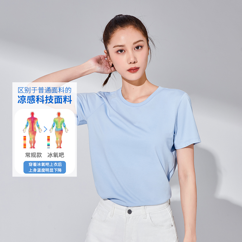 纯色运动圆领体恤 t恤女轻薄冰氧吧凉感打底衫 拓路者夏季 冰丝短袖