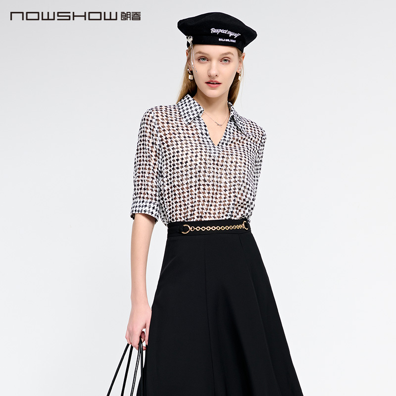 222026 千鸟格剪花气质衬衫 NOWSHOW朗香夏季 新品