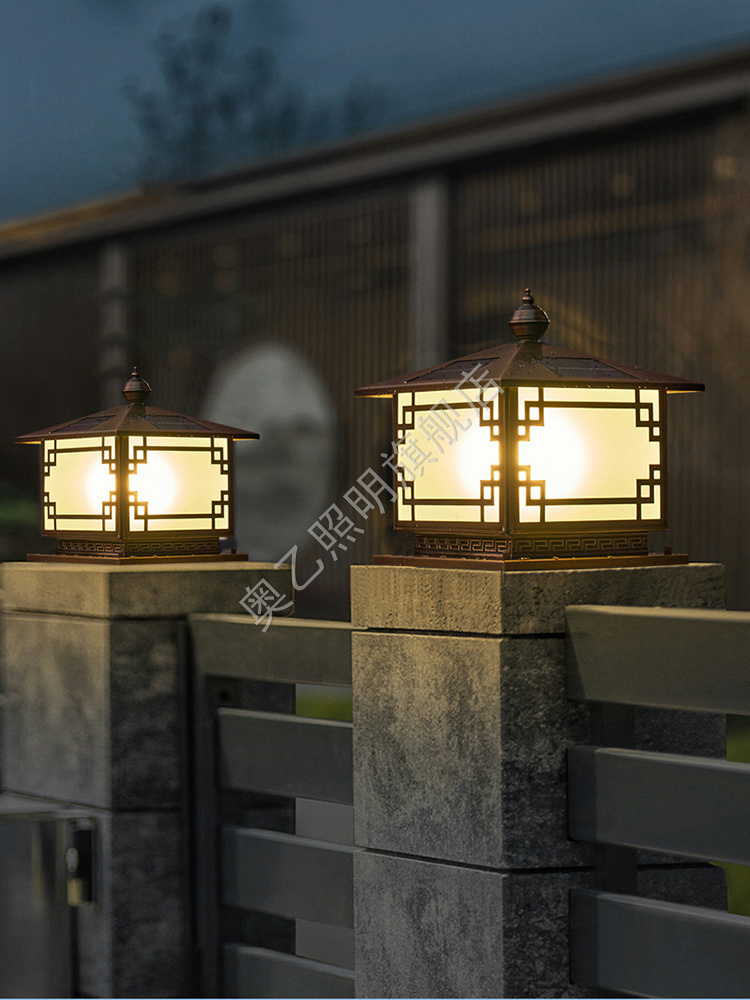 全铜太阳能柱头灯别墅大门两侧柱子灯庭院围墙2024新款 户外立柱灯