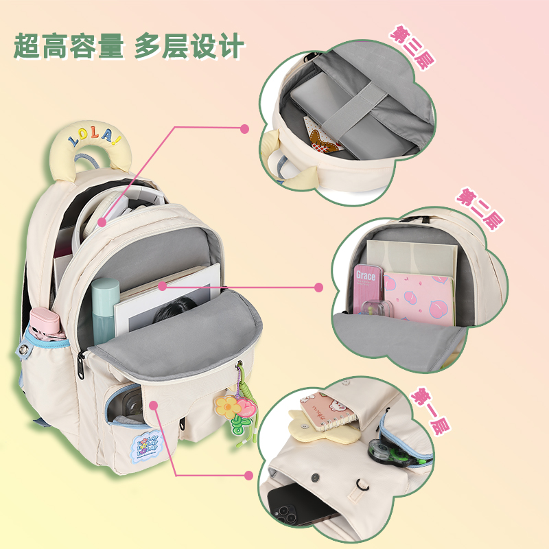 LOLA 可爱书包女生初中女大学生高中生旅行背包 DESIGN芝士双肩包