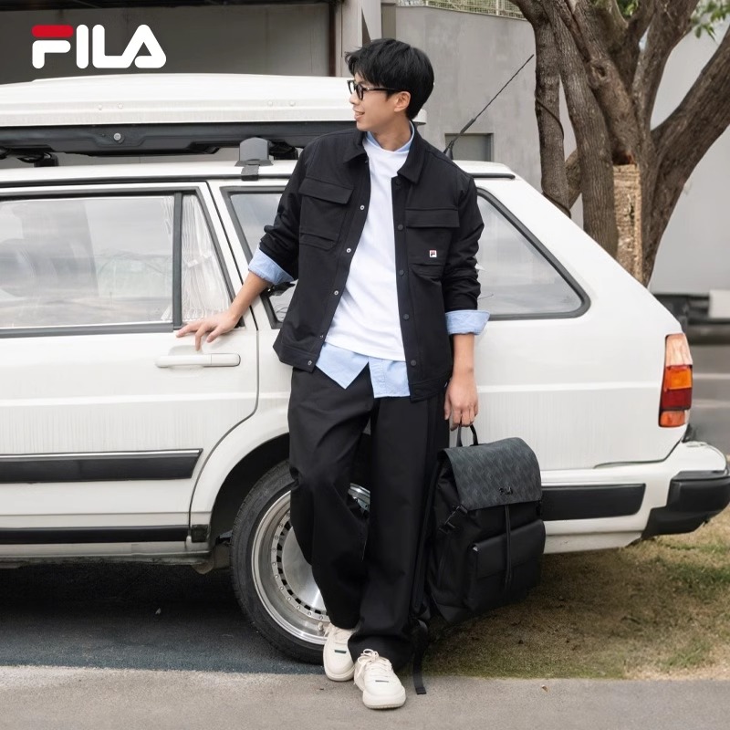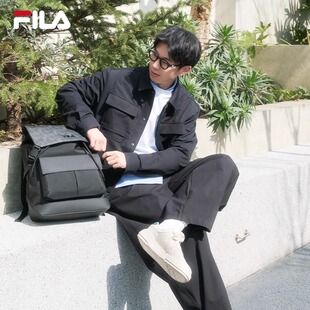 FILA斐乐男士 易烊千玺同款 背包双肩包老花书包电脑包包 黑武士