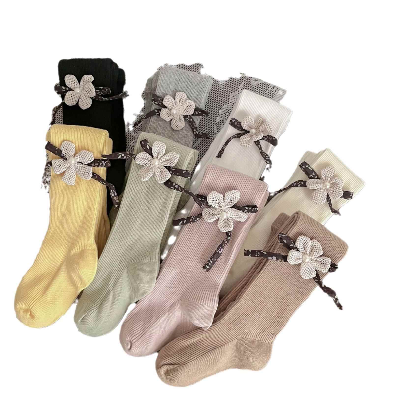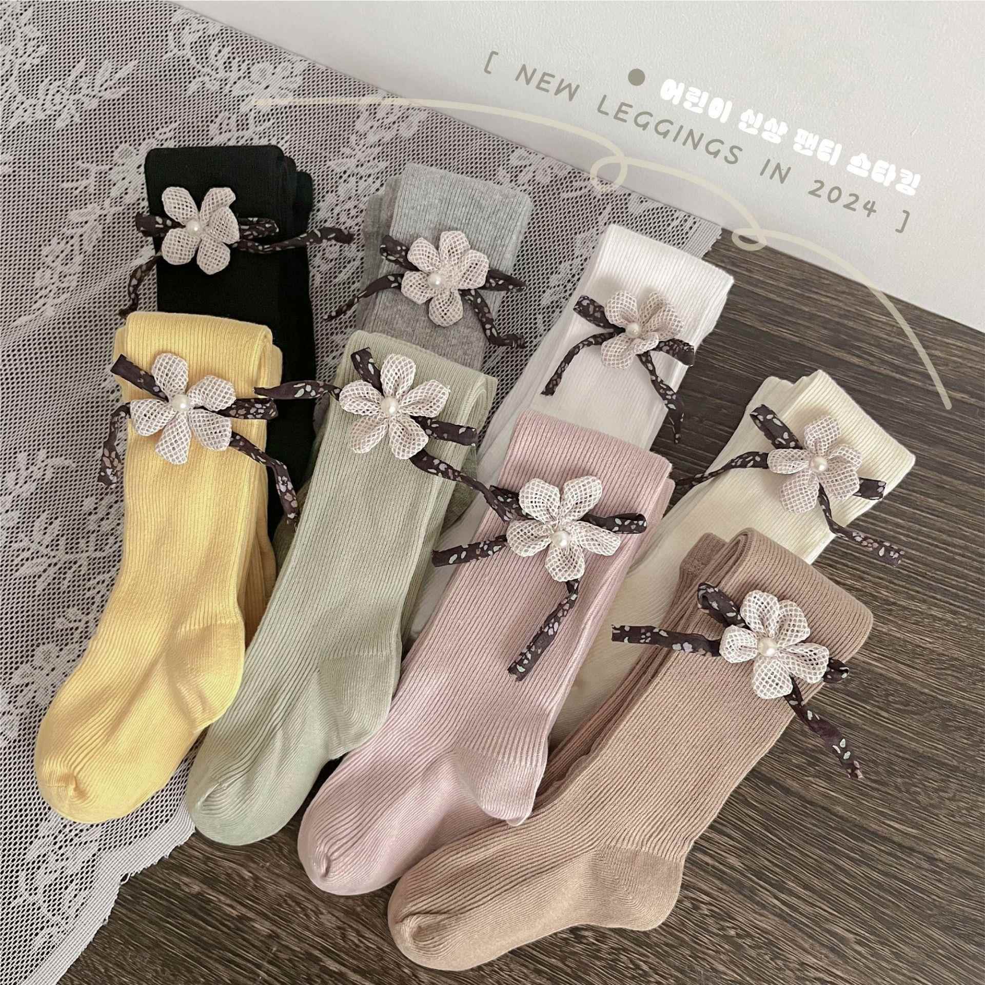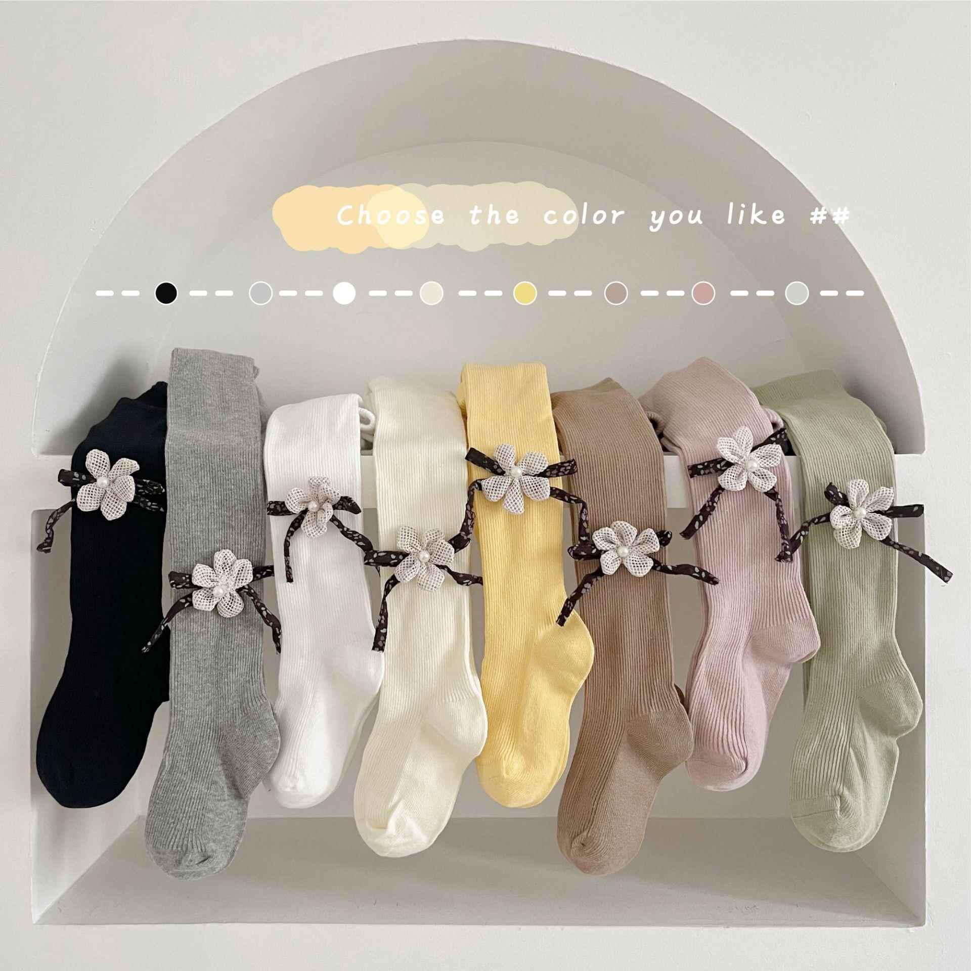 国风蝴蝶结宝宝白色外穿打底裤 袜中式 袜 春秋棉女童连裤 儿童打底裤