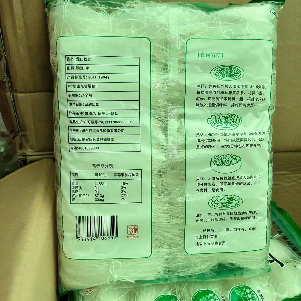 山东特产双塔青塔龙口粉丝豌豆绿豆淀粉粉丝500 3袋火锅麻辣烫粉