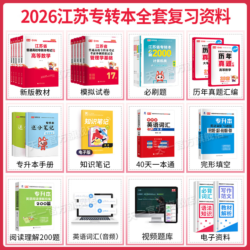 2026新版 江苏专转本数学语文经济学财经类管理类电子信息类高数教材历年真题试卷必刷题五年一贯制天一库课专升本英语计算机类
